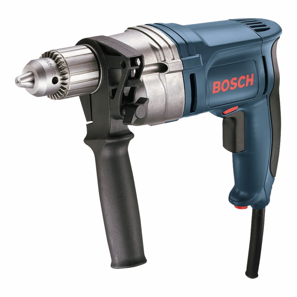 This drill is a 1/2 in. pistol grip heavy duty high amperage pro drill. With an 8 Amp motor and 1/2 in. keyed chuck. Extra long 8 ft rubber cord with 3-prong grounded plug. Variable speed, soft grip trigger, with reversing switch for greater control. Two finger trigger design and lock-on button for ease of operation.