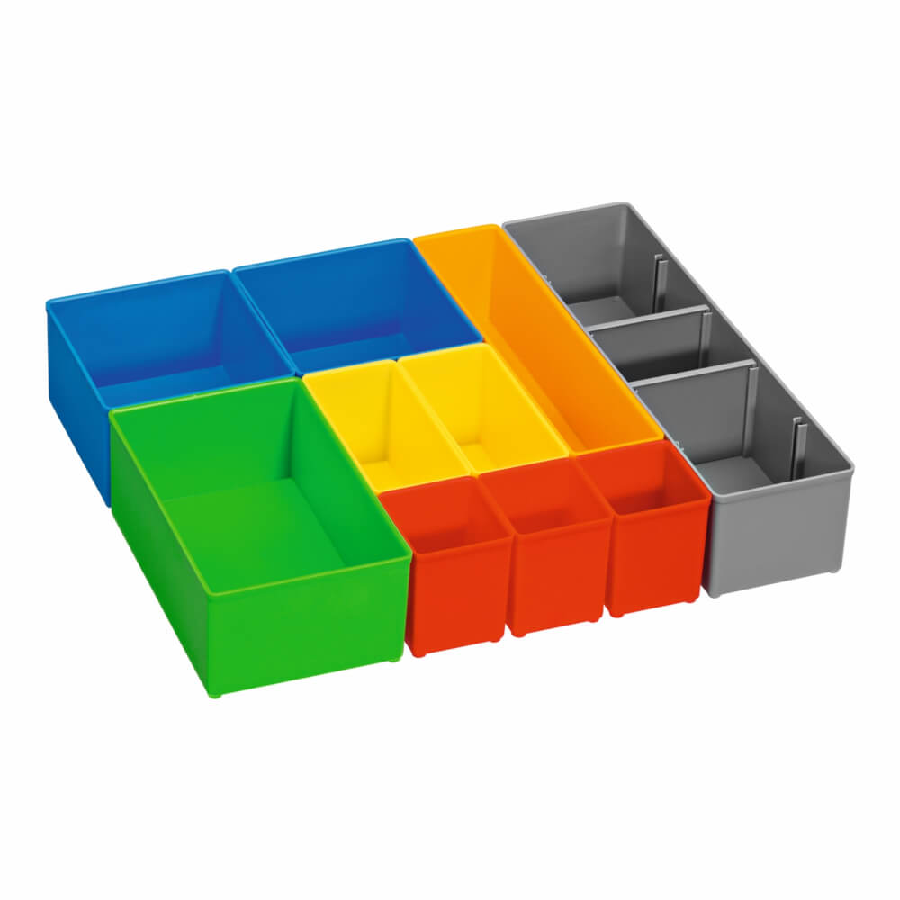 Designed for use with the Bosch Click & GO storage system. This Bosch ORG72-10 set features 10 modular organizers--in different shapes and sizes. These are designed for keeping items neatly stored and easy to find. Use the optional organizers to store bits, blades, fasteners, hand tools and more. The ORG72-10 10-piece set makes a useful addition to L-BOXX-1 storage case and/or the i-BOXX-72 storage tray (sold separately).