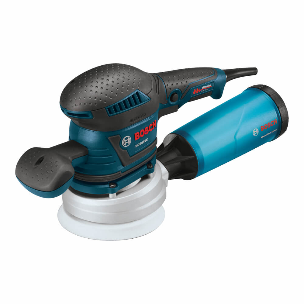 The Bosch ROS65VC-5 Random Orbit Sander/Polisher delivers a Vibration Control™ suspension system, which minimizes the amount of vibration that reaches the hands.