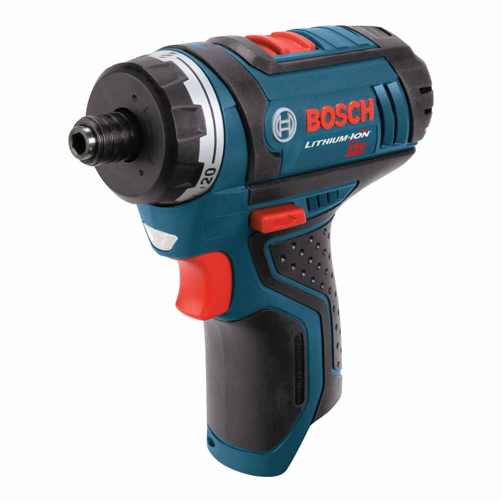 The Bosch PS21 12V Max Two-Speed Pocket Driver provides users with the shortest head-length in class at only 5.6 In., to allow users to drive screws in many hard-to-reach areas straight on. The tool weighs 1.8 Lbs., but it delivers 265 In.-Lbs. of max torque, making it a great solution for electricians or installers who have overhead driving. With two speeds (0-350 rpm and 0-1,300 rpm) and 20 1 torque settings, it is a driver that can match speed to application. This tool has an integrated LED light, a 1/4 In. quick-change hex chuck and a forward/reverse button for easy screw removal.