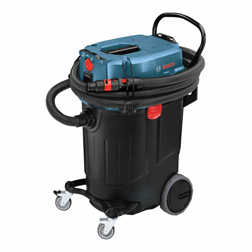 The Bosch VAC series dust extractors come with the best in class combination of air flow and suction power, which makes this unit ideal for dust extraction. The VAC140S is capable of wet and dry pick up. When paired with a HEPA filter (accessory VF120H - not included), this unit has been independently tested to meet the EPA definition of a HEPA vacuum. The semi-automatic filter cleaning system provides the benefit of allowing the filters to be cleaned whenever it is needed. Use the convenient lever on the nozzle to clean the filters. Power tool activation reduces the need for a second extension cord, as the tool can be plugged directly into the dust extractor. Heavy duty wheels, a locking castor, a metal frame, and L-BOXX compatibility make this more than just a typical dust extraction unit. Click the L-BOXX on top of the vacuum to create your mobile work station.