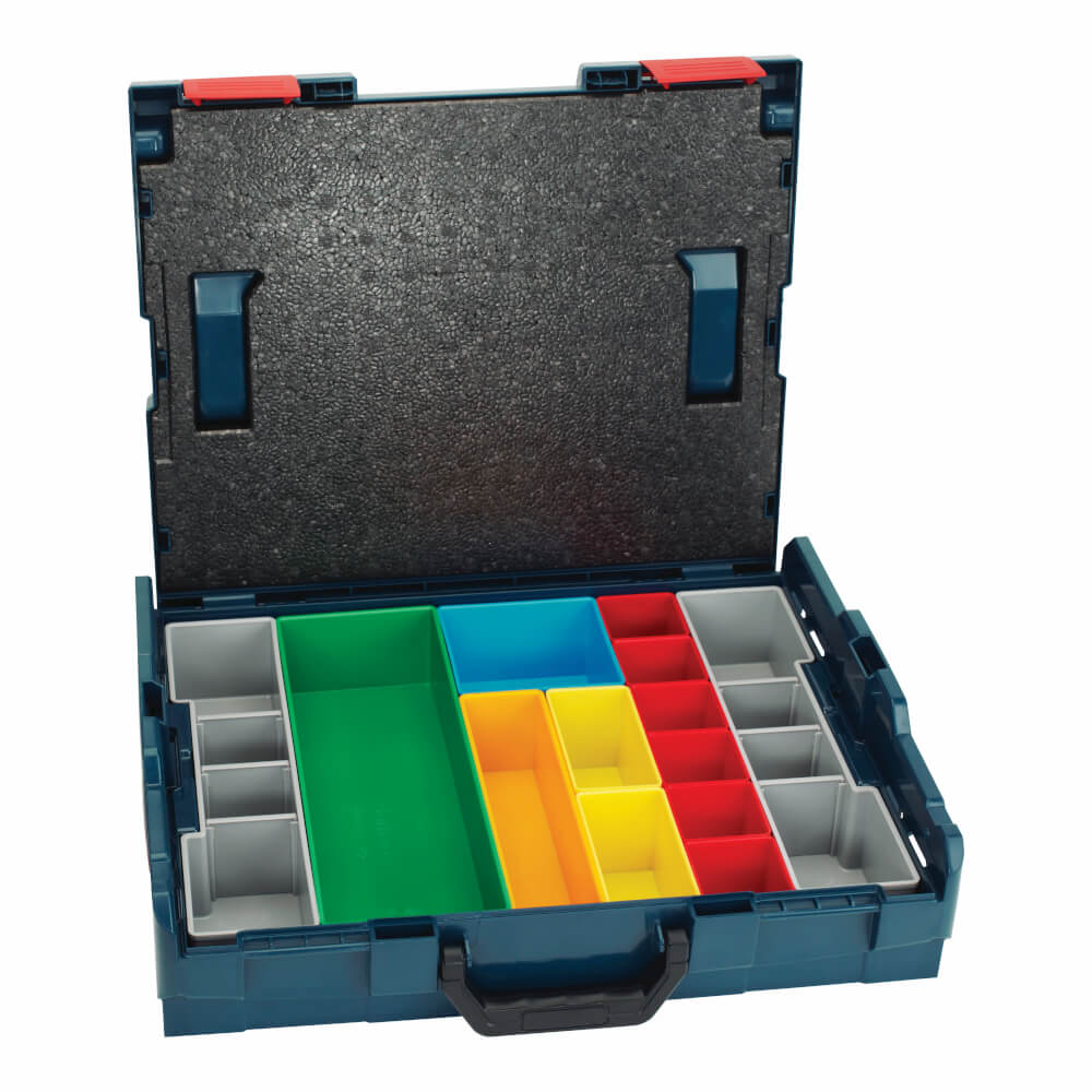 The new L-BOXX is an innovative stackable tool storage system designed to improve tool organization and transportation on the jobsite. L-BOXX is designed to improve efficiency for contractors spending a significant amount of their time traveling to their customers. Featuring a 13-piece insert bit set, this innovative tool storage system is designed to improve tool organization and transportation to and from the jobsite. The LBOXX-1A features comfortable locking clips, creating simple and easy access to tools. The case is also security-lockable, so that you can prevent theft of the contents in the case. The L-BOXX-1A is also durable-shock proof and built with water resistant material.