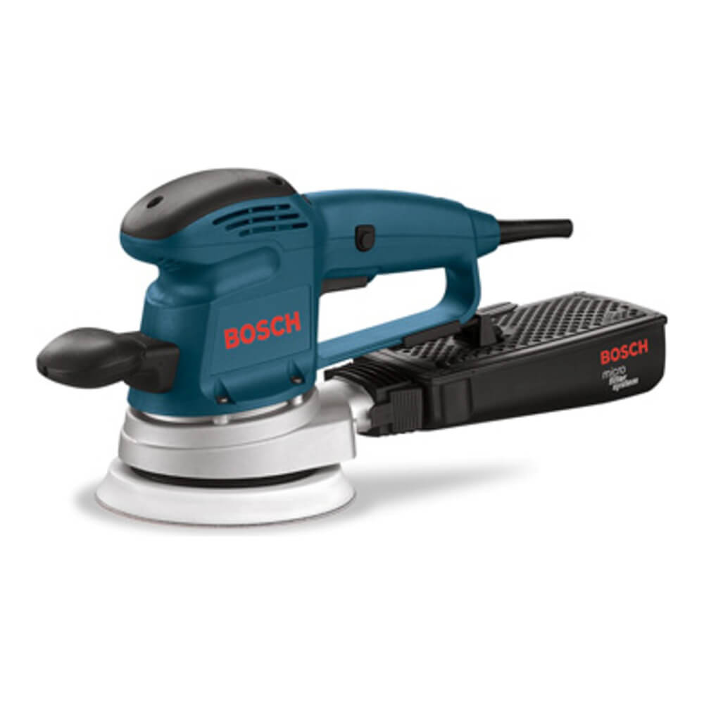 The Bosch 3727DEVS 6-In. Random Orbit Sander/Polisher has an integral pad-dampening braking system to eliminate swirl marks on the finished piece. This tool provides rapid removal and an ultra-smooth finish. Any pro who needs to sand - especially woodworkers, cabinet makers and finish carpenters - will find that the sander does the job to exacting standards and swift results. To ensure a strong grip of the disc while in use, it employs Bosch's signature HookTight hook-and-loop disc attachment. And the microcellular backing pad is pliant to ensure a smooth, fine finish on both flat and contoured surfaces alike. The sander was designed with an ergonomic soft-grip top and body. It has variable-speed control from between 4,500 and 12,000 opm to match the speed to the task and includes an on-board system for filtering fine dust.