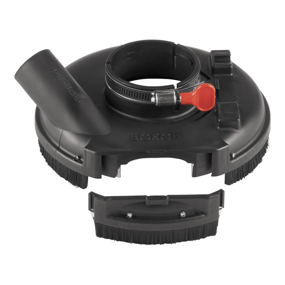 The Bosch 18SG-7 7 In. Concrete surfacing attachment dust collection system reduces clean-up time and provides cleaner, safer air for user.