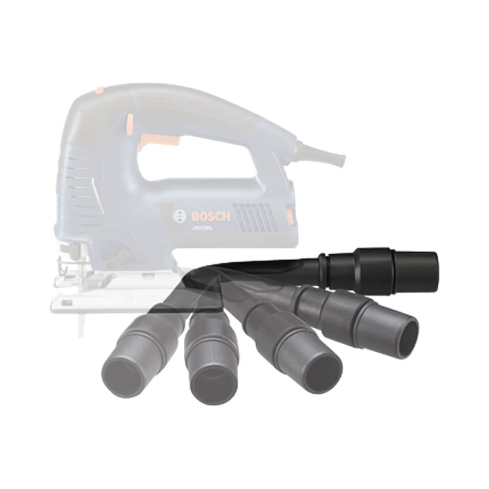 This item makes it easier to keep your workplace cleaner. Easily connects to 1-1/4 In., 1-1/2 In. and Bosch and other European-designed vacuum cleaner hoses. For use only with Bosch JS572E and JS572EB jig saws.