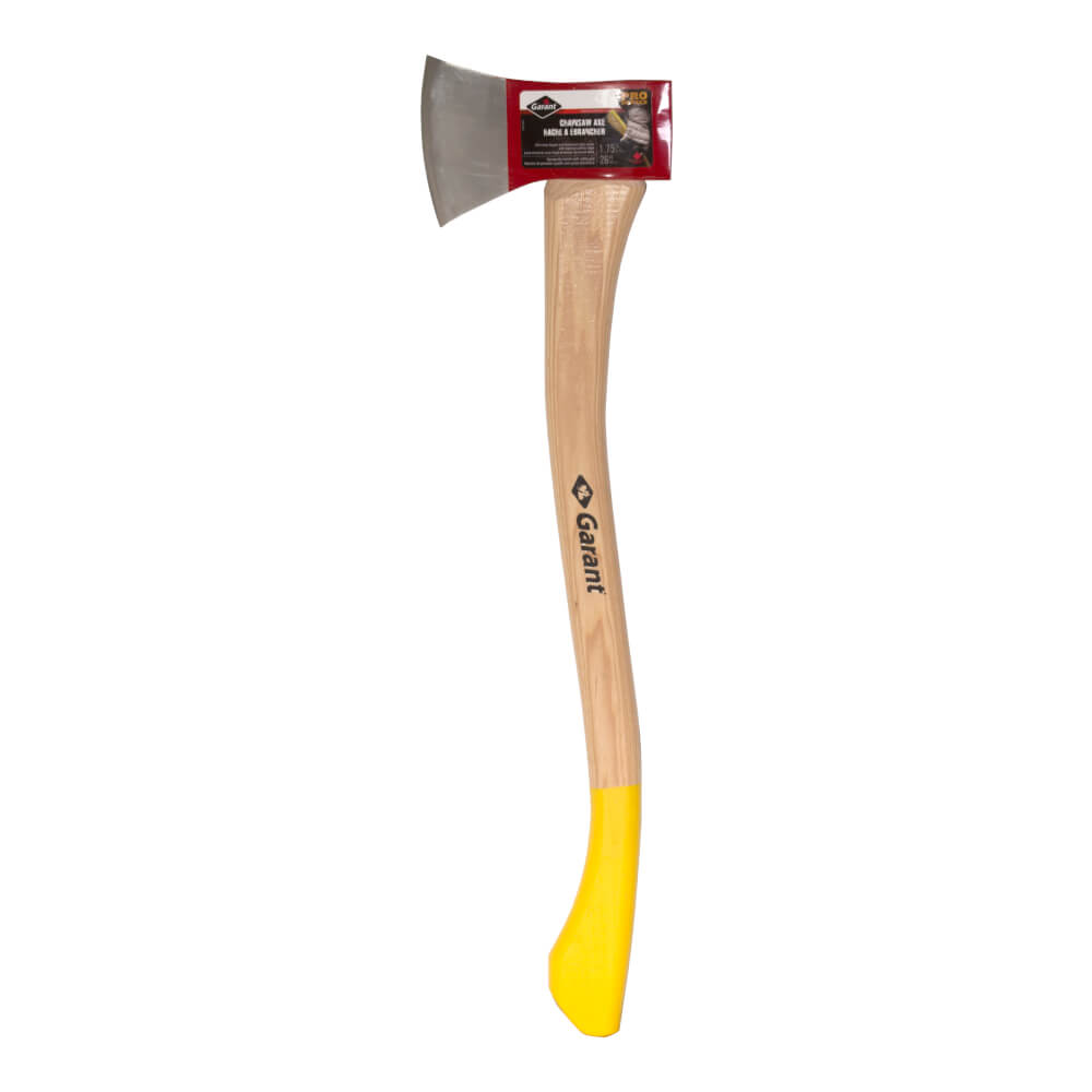 Chain saw axe, 1.75 lbs drop-forged and tempered steel head, red, head polished on 2/3 for a sturdier look, 26 in. top quality varnished hickory handle with non-slip safety grip for safer handling, American eye. Very slim blade with a tapered cutting edge. Perfect for pruning. Limited lifetime warranty.