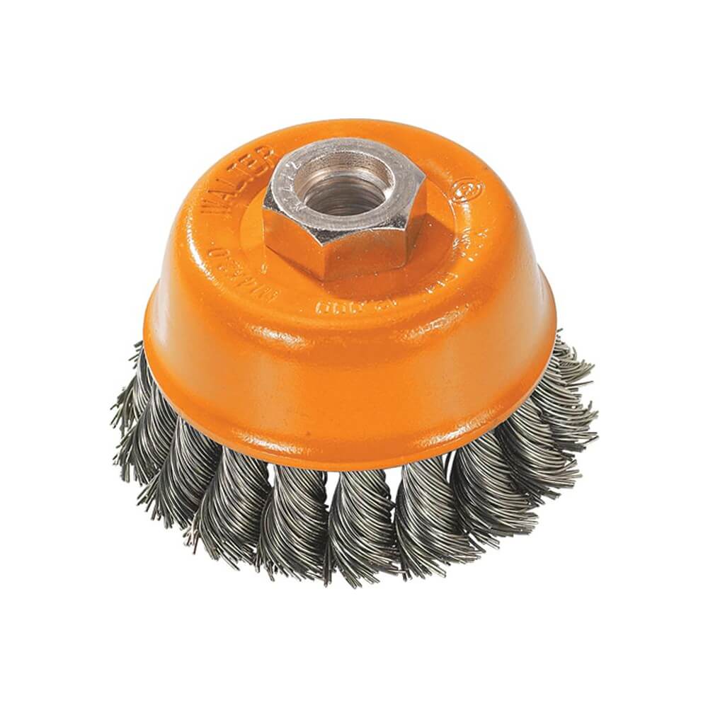 Knot-twisted for heavy-duty brushing such as deburring, weld edge cleaning, removal of scale, spatter, heavy rust and corrosion, etc.