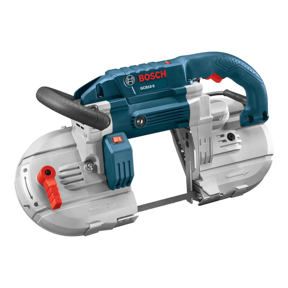The Bosch GCB10-5 deep-cut band saw is the lightweight, easy-to-handle tool that delivers nearly spark-free cuts through rebar, conduit and other metals. This saw features a robust 10 Amp motor that offers clean, precise cuts "“ with less rework needed for burrs or tempering colors. This tool is powerful enough to handle professional-sized jobs on most materials. And it provides nearly spark-free cuts for safer metal-cutting operation. With variable-speed settings from 100 surface feet per minute and up to 380 surface feet per minute, the band saw allows the user can match the cut rate to the material for greater precision. This ergonomic, compact band saw weighs only 14.5 Lbs., making it ideal for overhead cuts, and it has a saw hook to hang between cuts. It as a bright LED to illuminate the cut line.