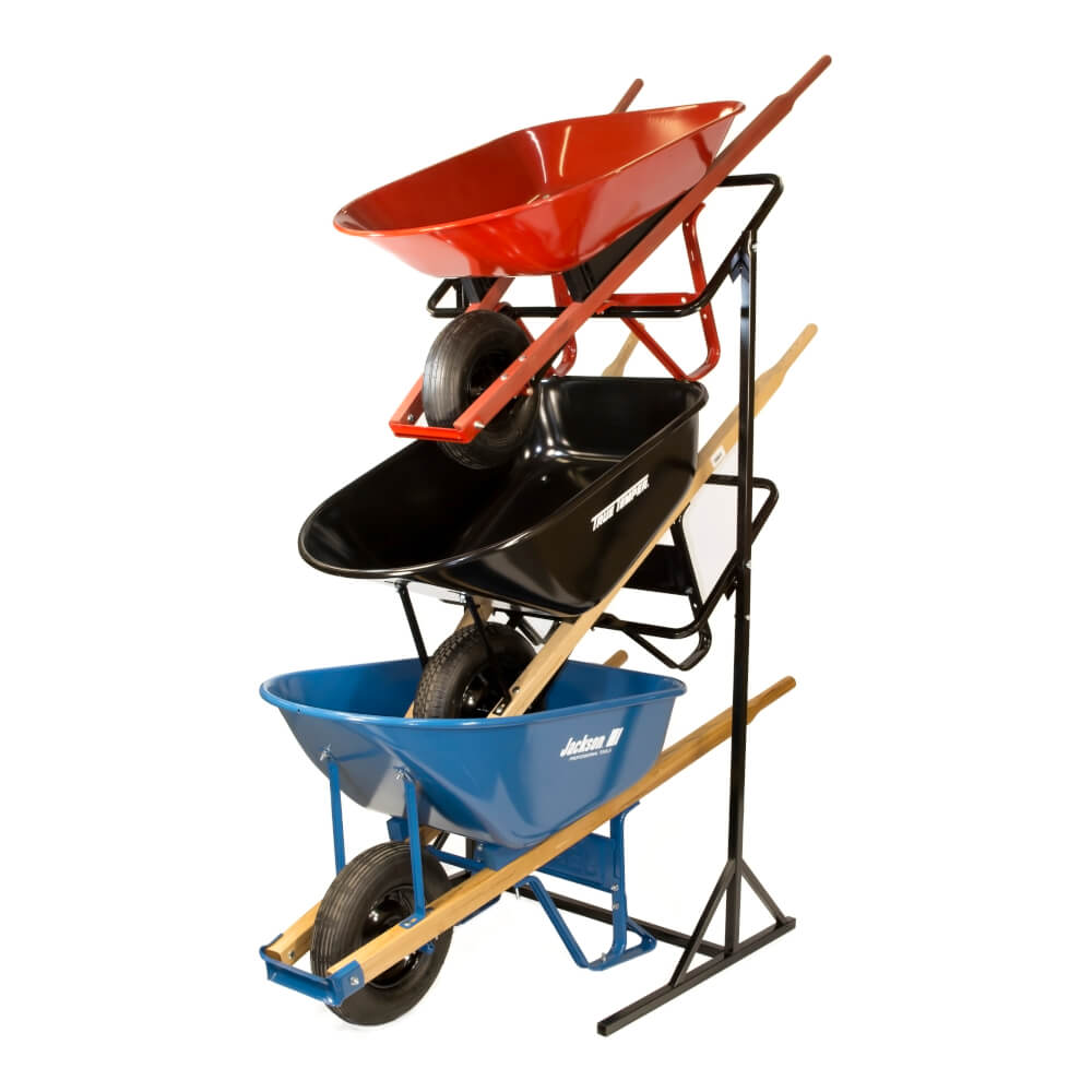 Tubular steel display. May contain 3 wheelbarrows (not included).. Dimension 48 in W X 12 in H.