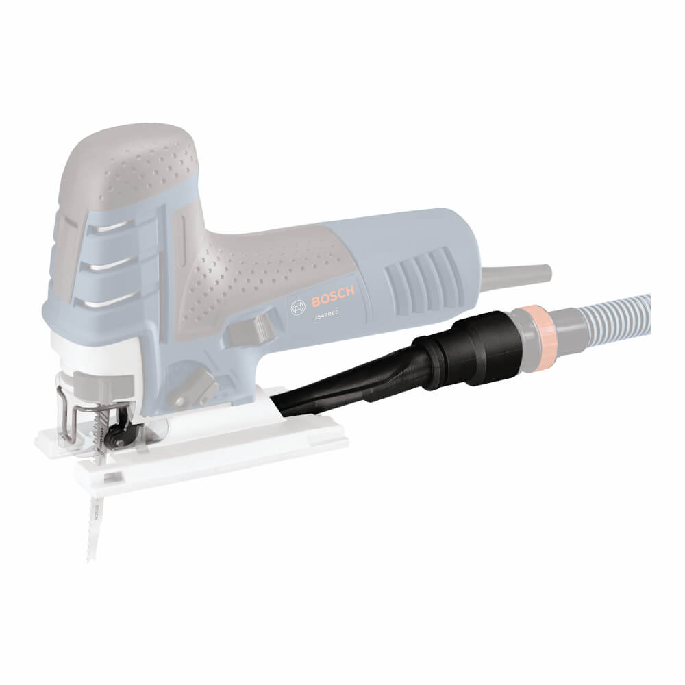 This item makes it easier to keep your workplace clean. Easily connects to 1-1/4 In., 1-1/2 In. and Bosch vacuum cleaner hoses. Only for use with JS470E and JS470EB jig saws.