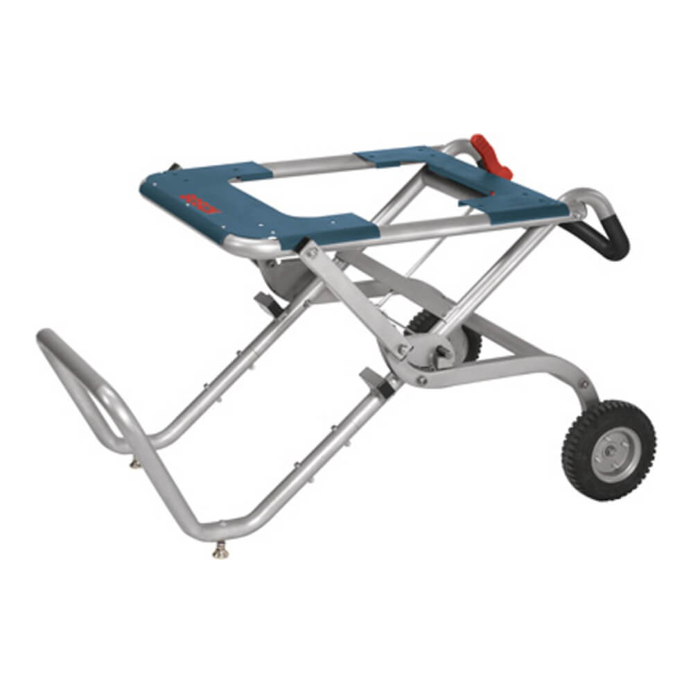 The Bosch TS2100 Gravity-Rise™ Wheeled Low-Stance Table Saw Stand was engineered to help users find the ideal working height for their table saws. It provides a lower stance than the Bosch TS2000 but deliver the same great technology that makes setup and take down quicker than ever. The stand is compatible with the Bosch REAXX™ and 4100 table saws, and it can accommodate many competitive saws from DeWALT®, Makita®, Hitachi®, Craftsman®, Ridgid® and more. It's extremely portable: 8 In. wheels with treaded, solid non-pneumatic tires can handle the toughest terrain with ease and never go flat, and it weighs 52 Lbs. The stand collapses into a dolly, making it easier to transport the saw and the stand together. Its collapsible design minimizes storage space requirements, so transporting this stand to, from, and around the jobsite is a breeze. The durable stand withstand up to 250 Lbs. of downward force, and it has a powder-coat finish for longevity.