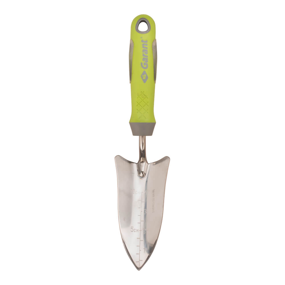 Hand transplanter with poly/gel grip. Perfect for loosening the root ball with ease when transplanting healthy plants or removing diseased or dead plants. Ergonomic grip designed to fit the hand perfectly. Soft gel cushion for maximum comfort. Heavy-duty stainless steel blade.