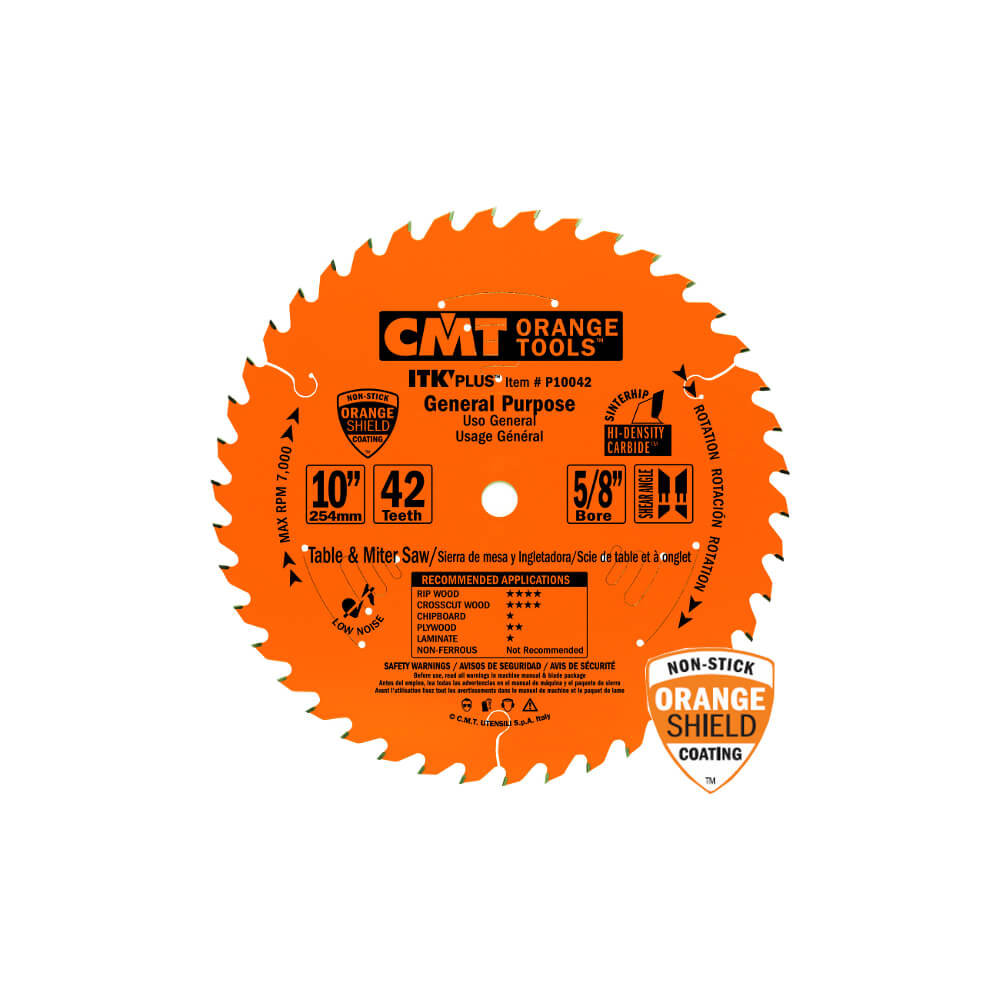 A new saw blade which reduces material waste and demand on the saw, while delivering reliable, industrial-quality performance cut after cut! This blade features a heavy-duty steel plate (44 Rockwell) for higher resistance during work, laser-cut heat expansion slots and sound dampening channels to prevent the tool from warping during rotation and greatly reduce vibrations! Blade teeth are made of Industrial SinterHip High-density carbide which prevents the tool from any material failure and guarantees a longer cutting life. Also, the new Shear Angle Grind on the teeth front face produces smooth cuts, reduces the blade cutting force and improves the cutting speed, setting a new standard for performance and value. Last but not least, the blade Non-Stick Orange Shield Coating keeps the blade running cool, reduces pitch build-up and protects against corrosion. Ideal for all woods including wet lumber. This outstanding saw blade is delivered in practical clamshell packaging.