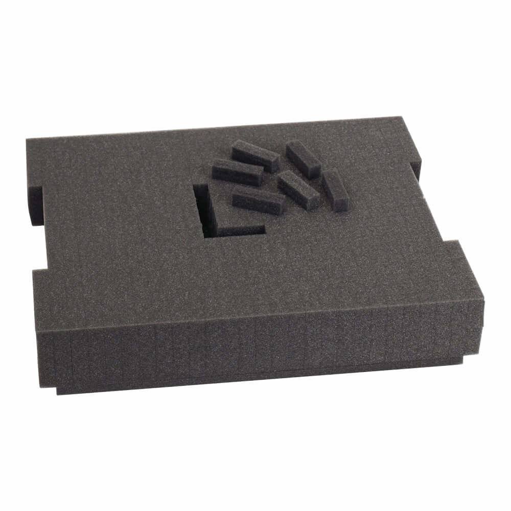Designed for use with the Bosch L-Boxx-2 carrying case, which is part of the Bosch Click & GO mobile-transport system. This Bosch foam-201 pre-cut foam insert provides added versatility and convenience. The insert features customizable foam pieces which push/pull out to accommodate Bosch or any other tools. Users can make completely customized tool inserts using this foam. This foam helps to keep valuable equipment safe and protected during transport or storage.