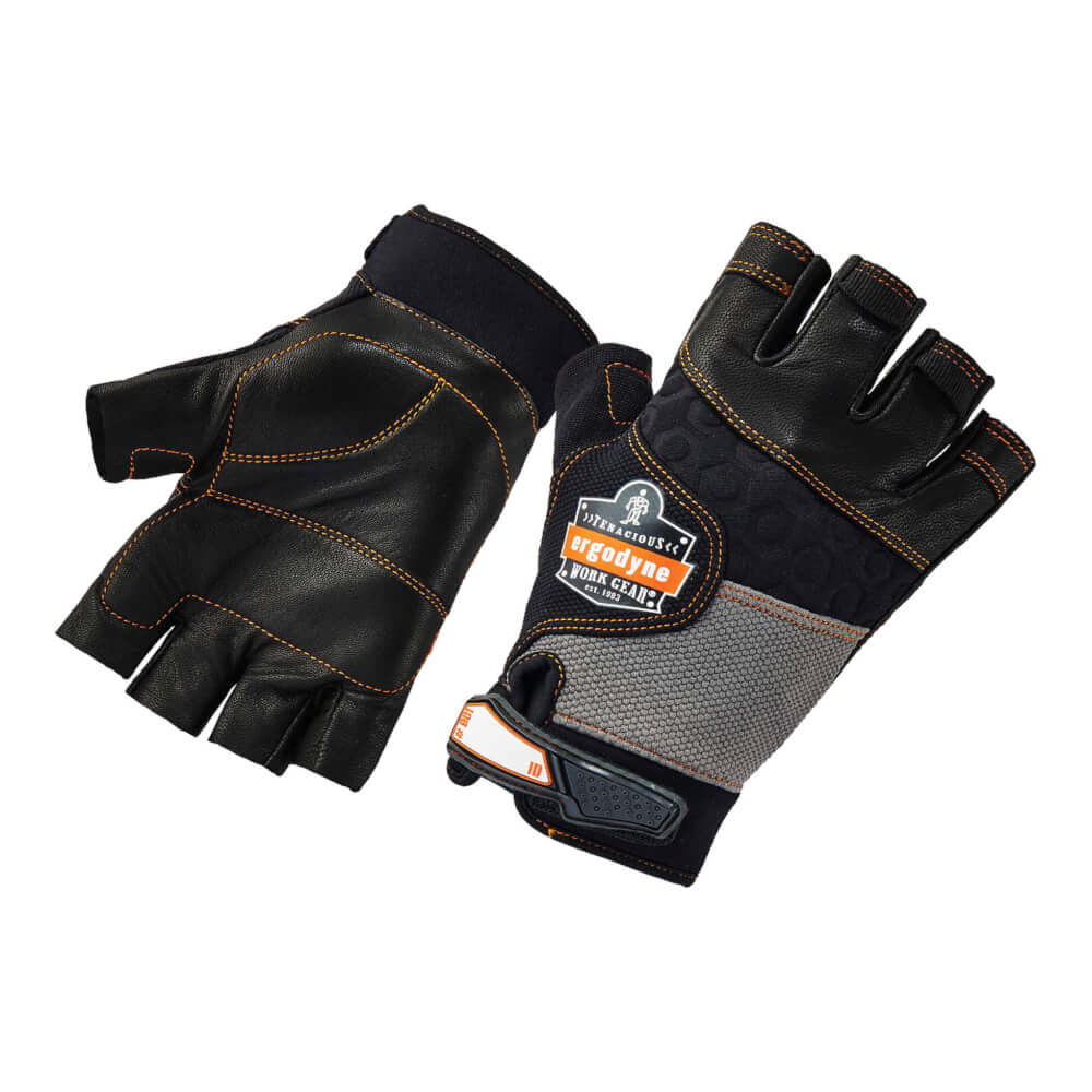 Half-Finger Leather Impact Gloves: Segmented foam palm padding in key areas reduces shock and impact; genuine leather construction for natural feel and flex.