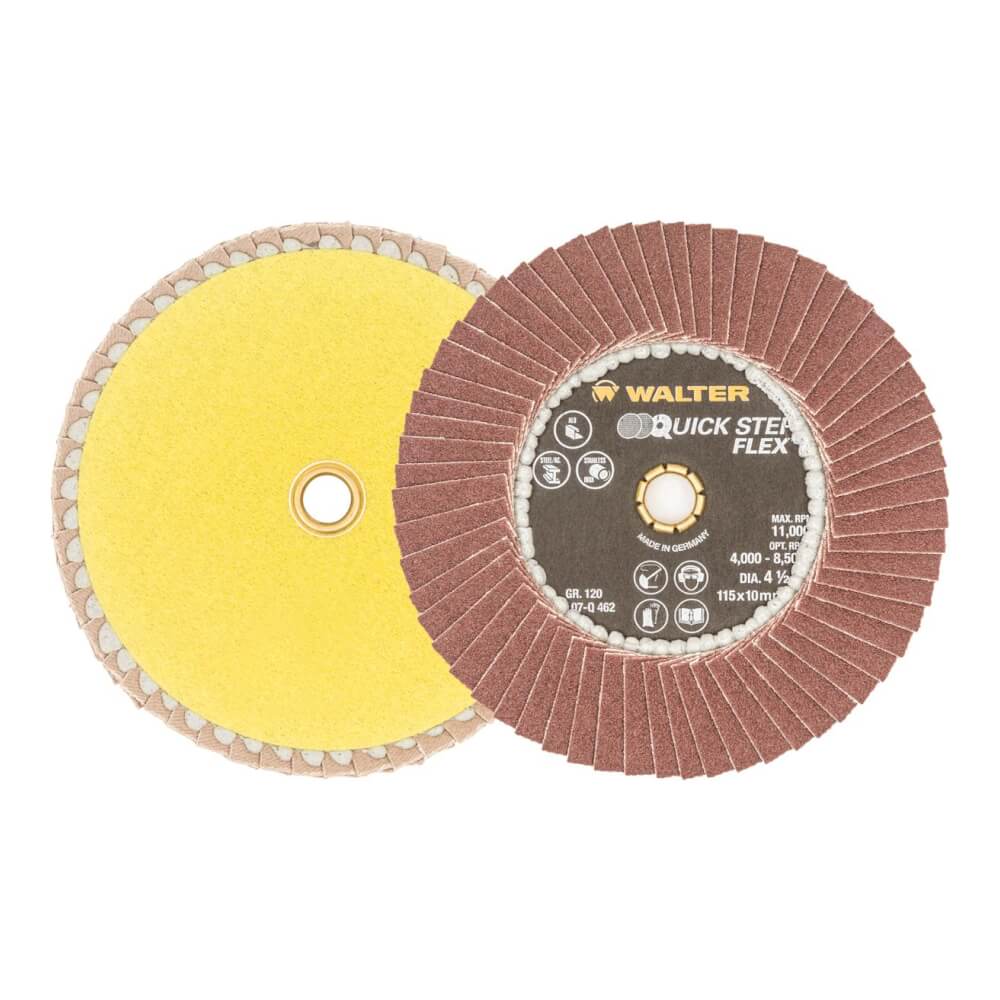 For bringing down and blending in light welds, for deburring, breaking edges and rounding corners. Aggressive, cool cutting and provides a consistent uniform finish. Abrasive flaps are secured onto a flexible backing, making them ideal for working on curved surfaces.