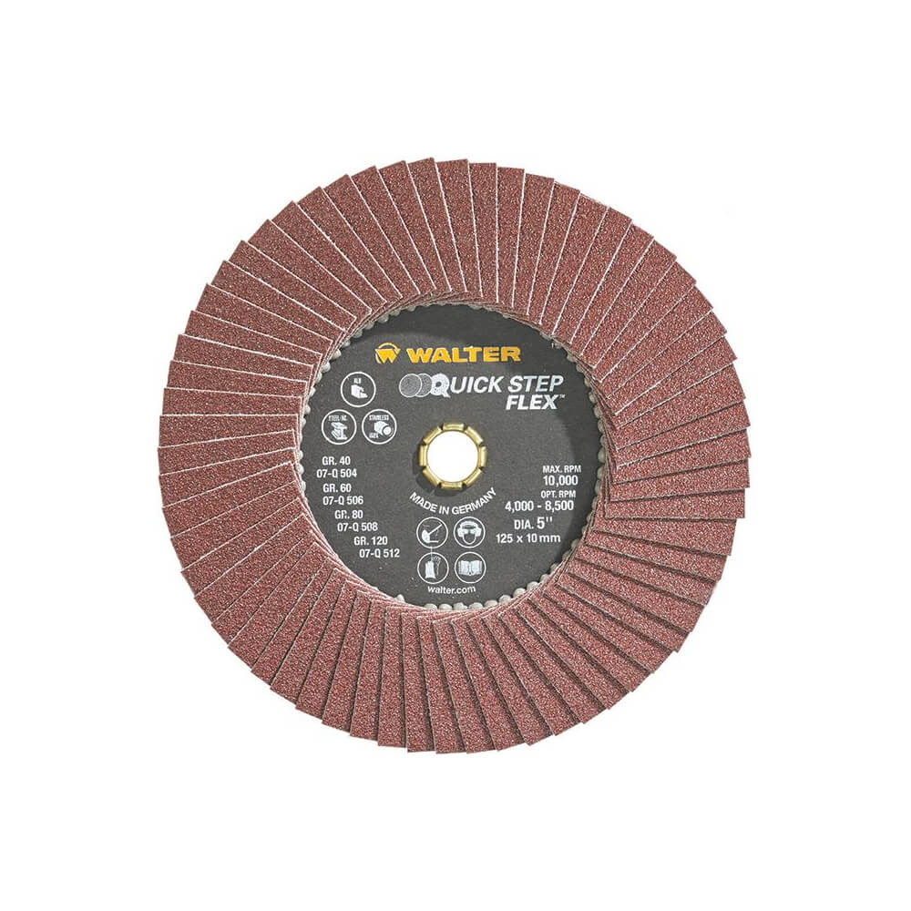 For bringing down and blending in light welds, for deburring, breaking edges and rounding corners. Aggressive, cool cutting and provides a consistent uniform finish. Abrasive flaps are secured onto a flexible backing, making them ideal for working on curved surfaces.