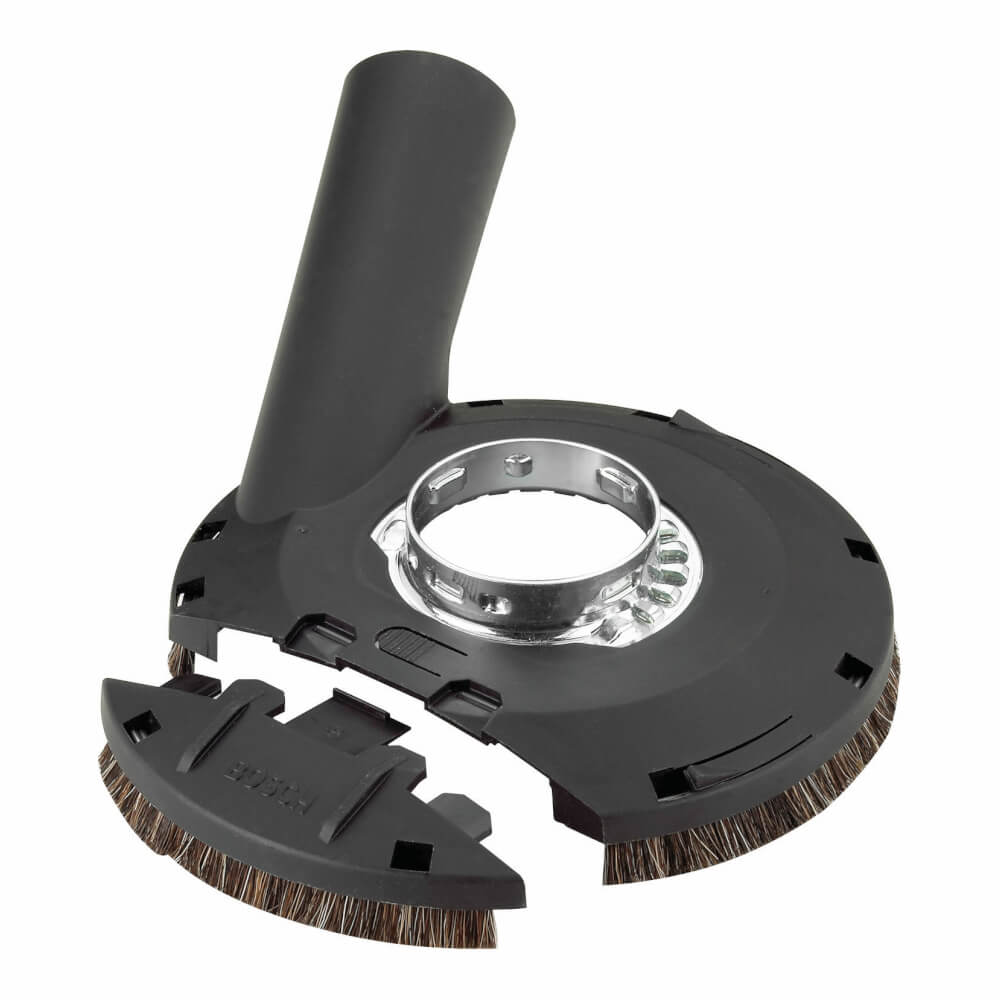 The Bosch 18SG-5E concrete surfacing attachment is designed for use with all Bosch AG series and 1800 series 4-1/2 In. and 5 In. small angle grinders. The guard reduces clean-up time and provides cleaner, safer air for the user. A removable nose piece allows for surface grinding right up to the wall.