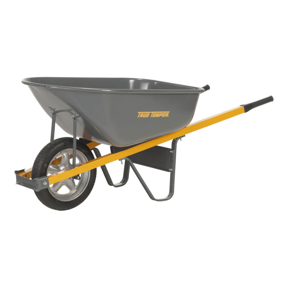Wheelbarrow, 6 cu. ft. steel tray, steel hdles, sport flat-free tire.